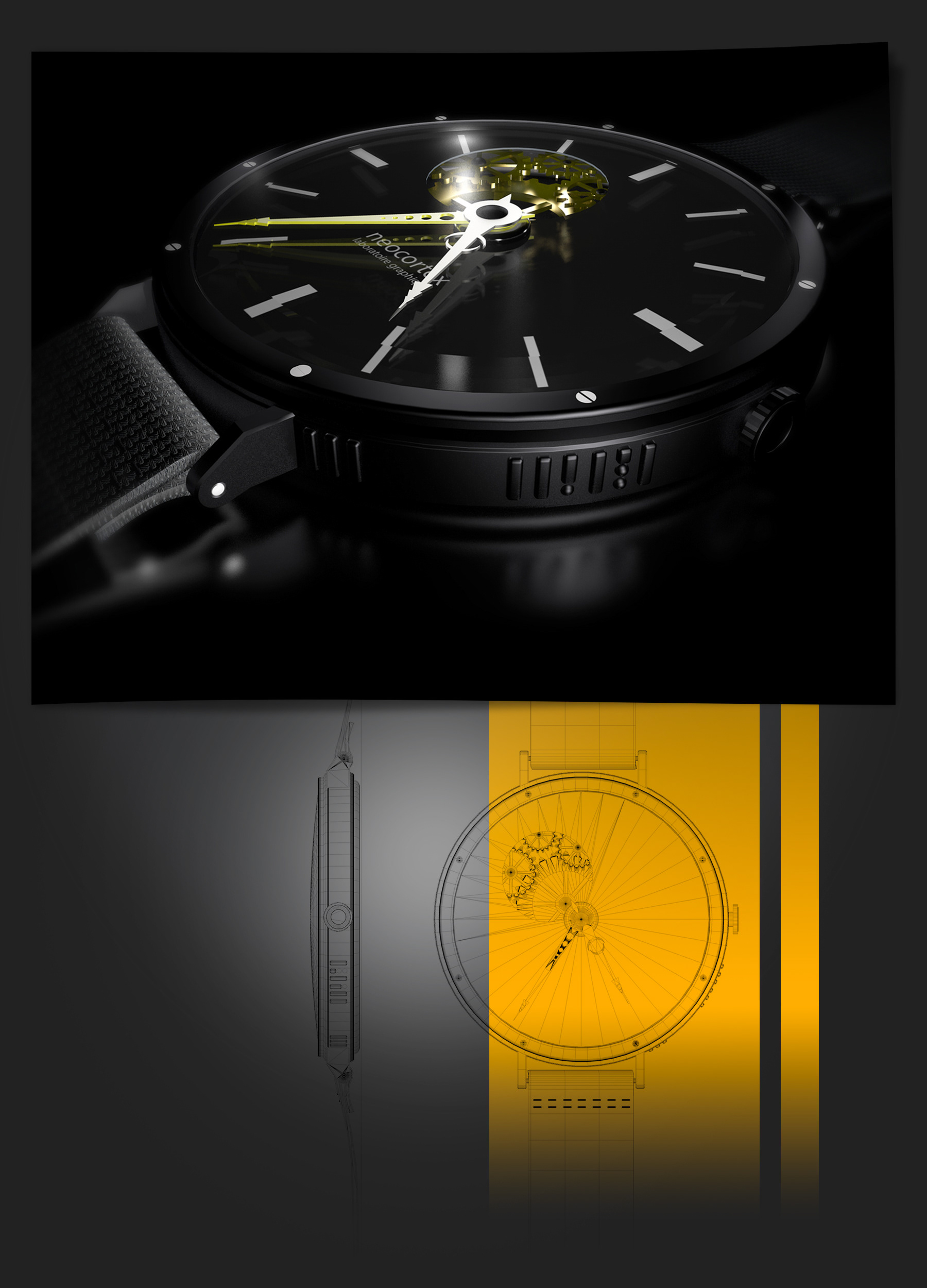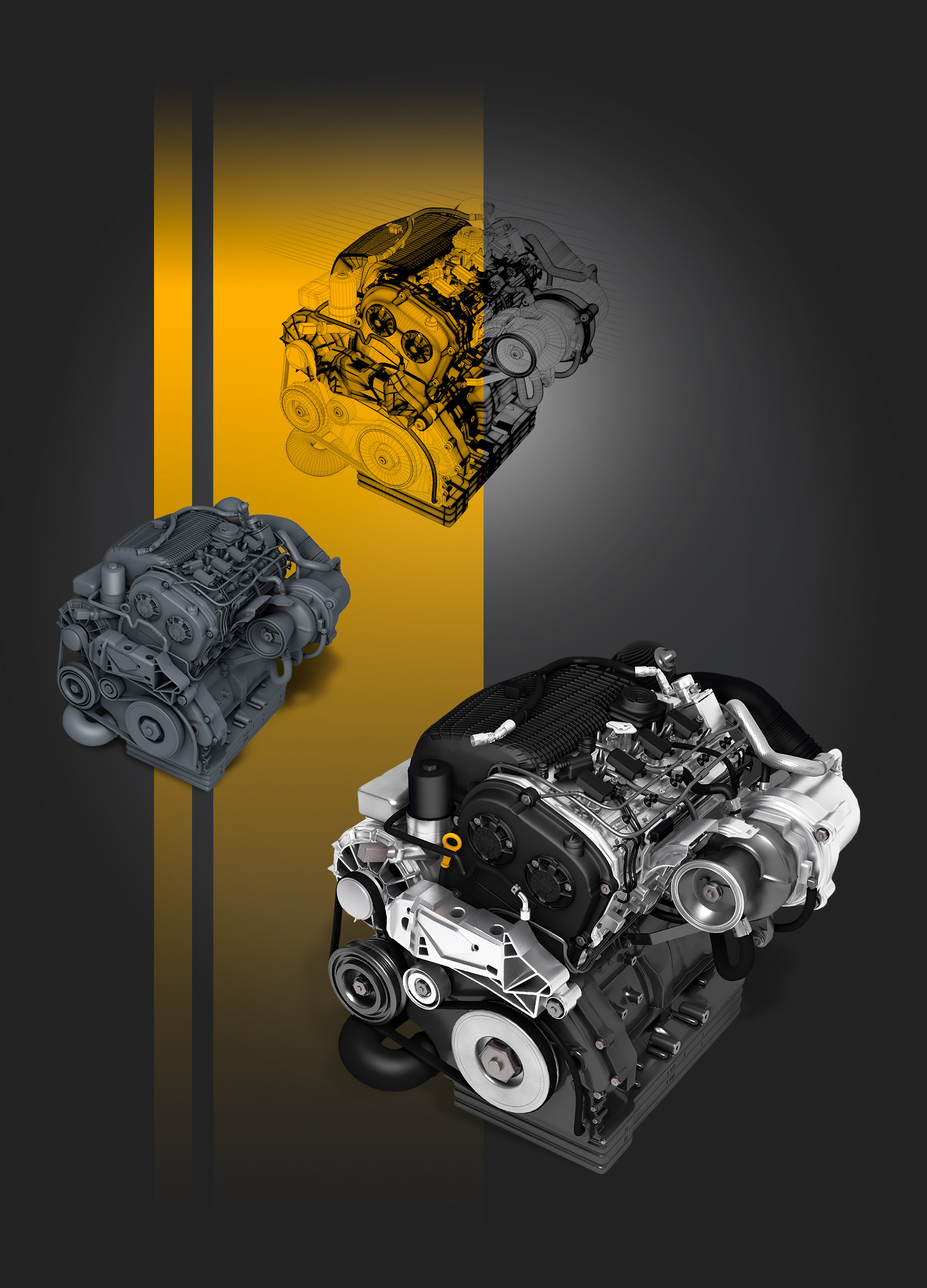 Modélisation complète d'un moteur en 3D pour intégration dans un visuel pour Babolat